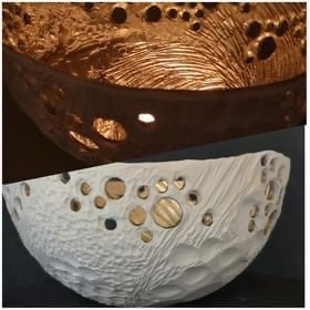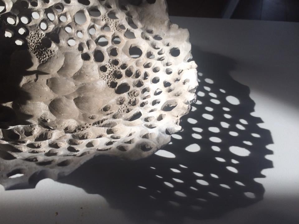 « Inspirées de mes découvertes sous-marines, dont j’extrais des formes, des compositions, des structures issues des coraux, gorgones, faunes et flores extraordinaires au combien variées pour les retranscrire au travers d’oeuvres poétiques et mystérieuses. »