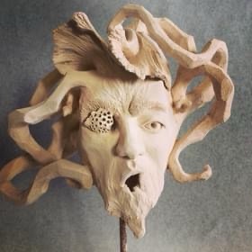 Gorgonia Tête sur socle métal